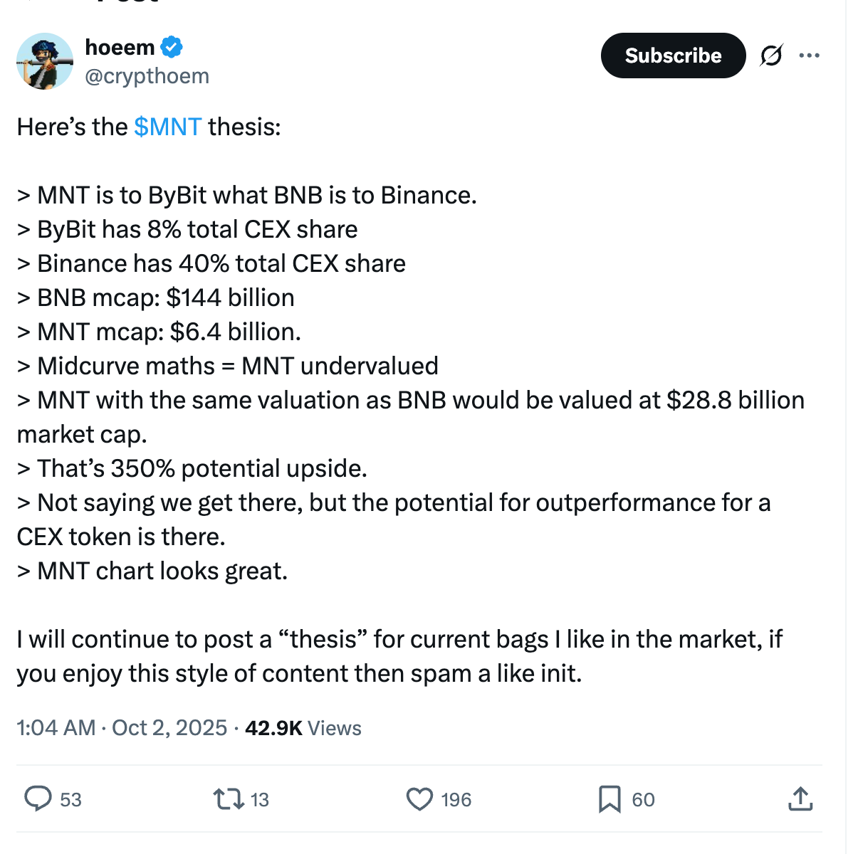 Mantle, an Ethereum Layer-2 network, is generating strong bullish sentiment due to several catalysts: