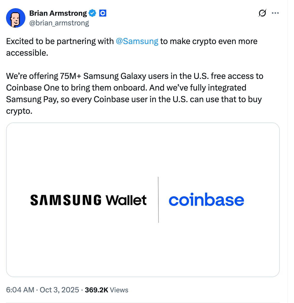 Samsung adds Coinbase crypto access for 75M Galaxy users