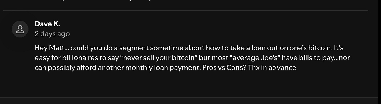 We’ve got a listener question here from Dave K. Dave is asking if you can take a loan out on your Bitcoin.