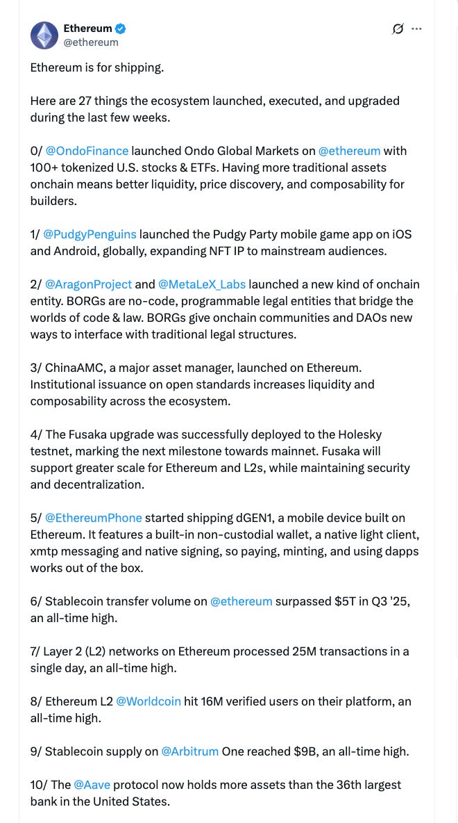 Takeaway: Ethereum isn’t waiting for headlines — it’s shipping a new financial internet week after week.