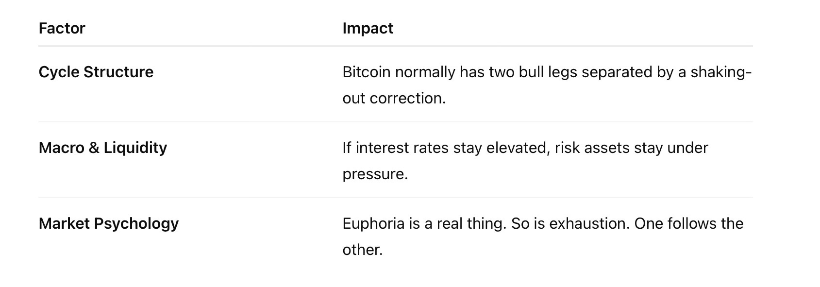 The argument is that Bitcoin has already completed (or is close to completing) its first major bull leg of this cycle. If that’s true, then sometime in within the next month → mid-2026, Bitcoin could do what Bitcoin always does after a strong run: