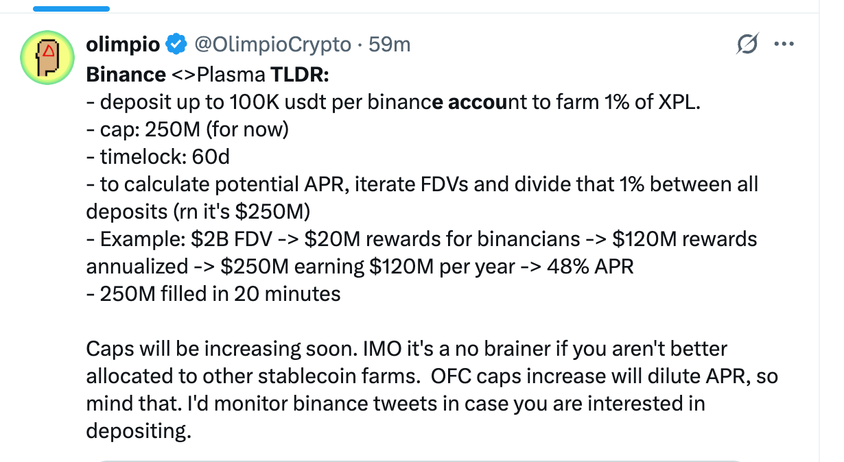 Binance’s new Plasma USDT product filled its $250M cap in 20 minutes, offering yield plus XPL airdrops. APRs up to 48%!