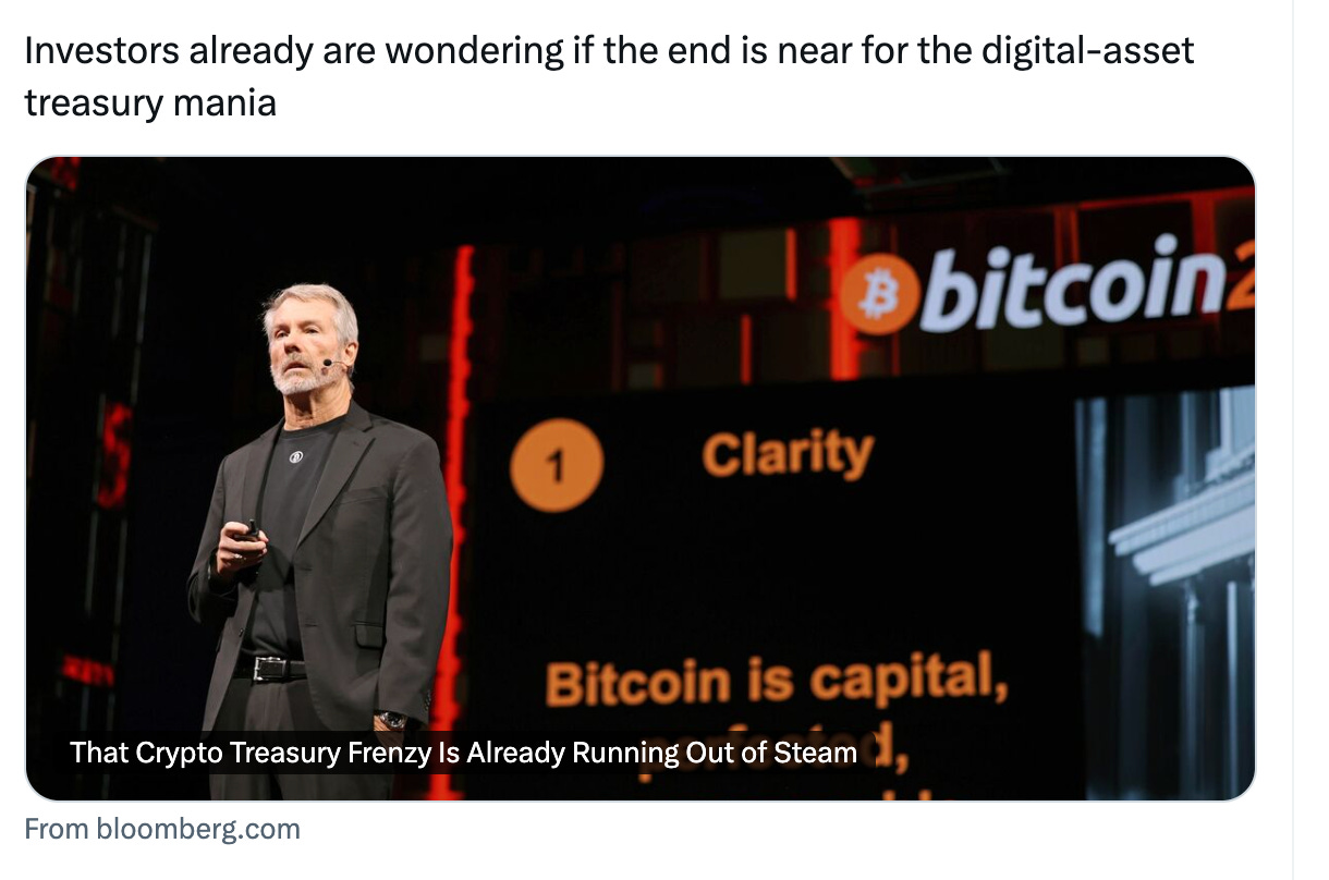 Cracks in the Treasuries? Bloomberg rags on Saylor, highlighting decreases in mNAV