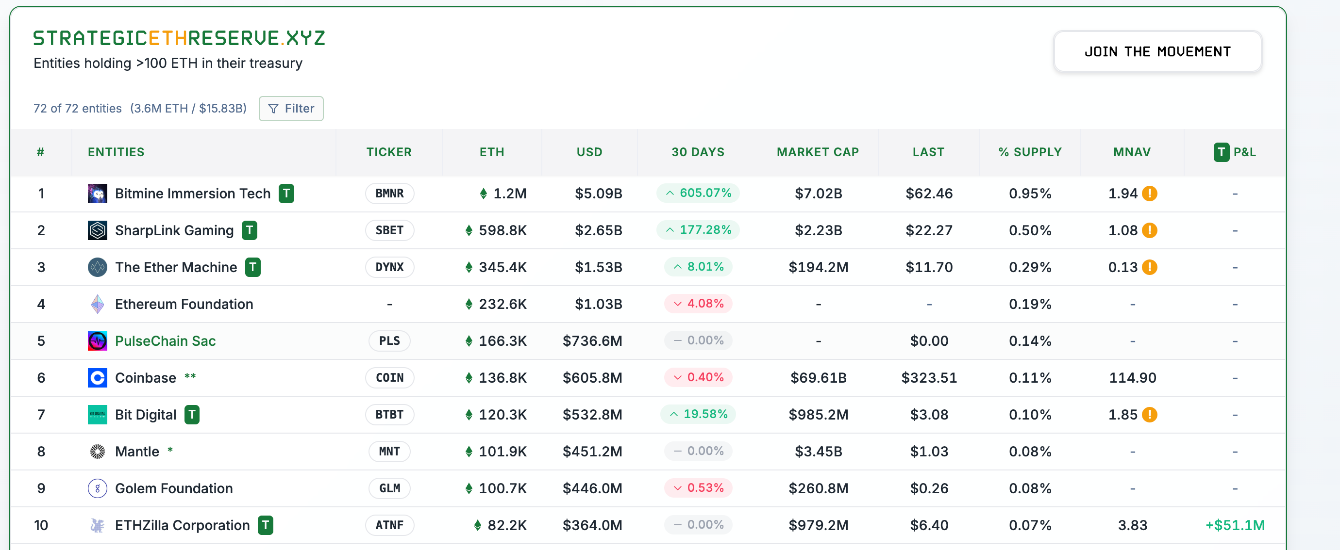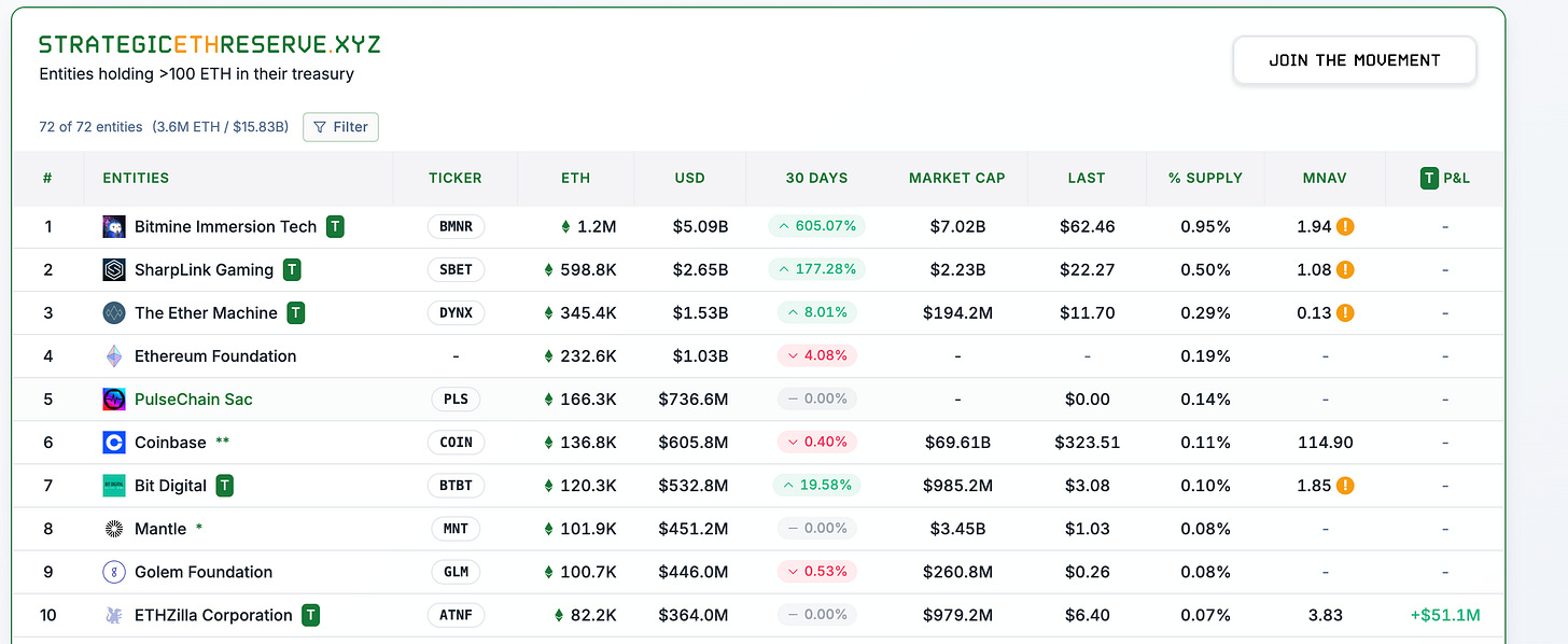 Bitmine became the first public company to hold over 1M ETH—worth $5B—after adding 320K ETH in a week. SharpLink isn’t far behind with 598,800 ETH ($2.5B). Companies are accumulating ETH at record speed, with 97% of holders now in profit.