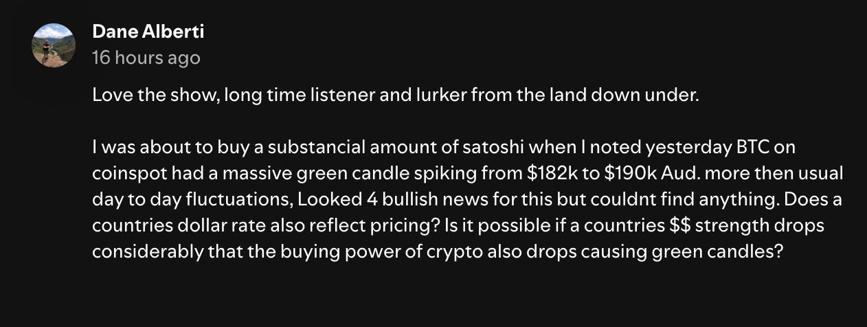 Dane Alberti wrote in from Down Under asking about whether token prices differ by exchange and geography. Short answer: yes. Local currency exchange rates and the exchange itself (Coinspot, Kraken, Coinbase, etc.) can impact spot prices. This is how concepts like the Kimchi Premium arise—Korean Bitcoin markets sometimes trade at higher prices. FTX famously exploited arbitrage opportunities like these. But before you imagine free money lying around, remember: speed and access are everything. Bots, advanced trading algos, and validator-level market access dominate this space. Retail can still play, but the mountain’s steep.