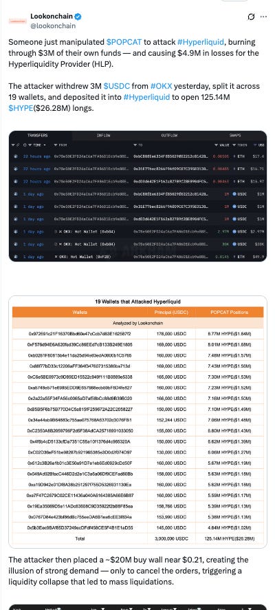 Hyperliquid flash crash ($63M in POPCAT liquidations)