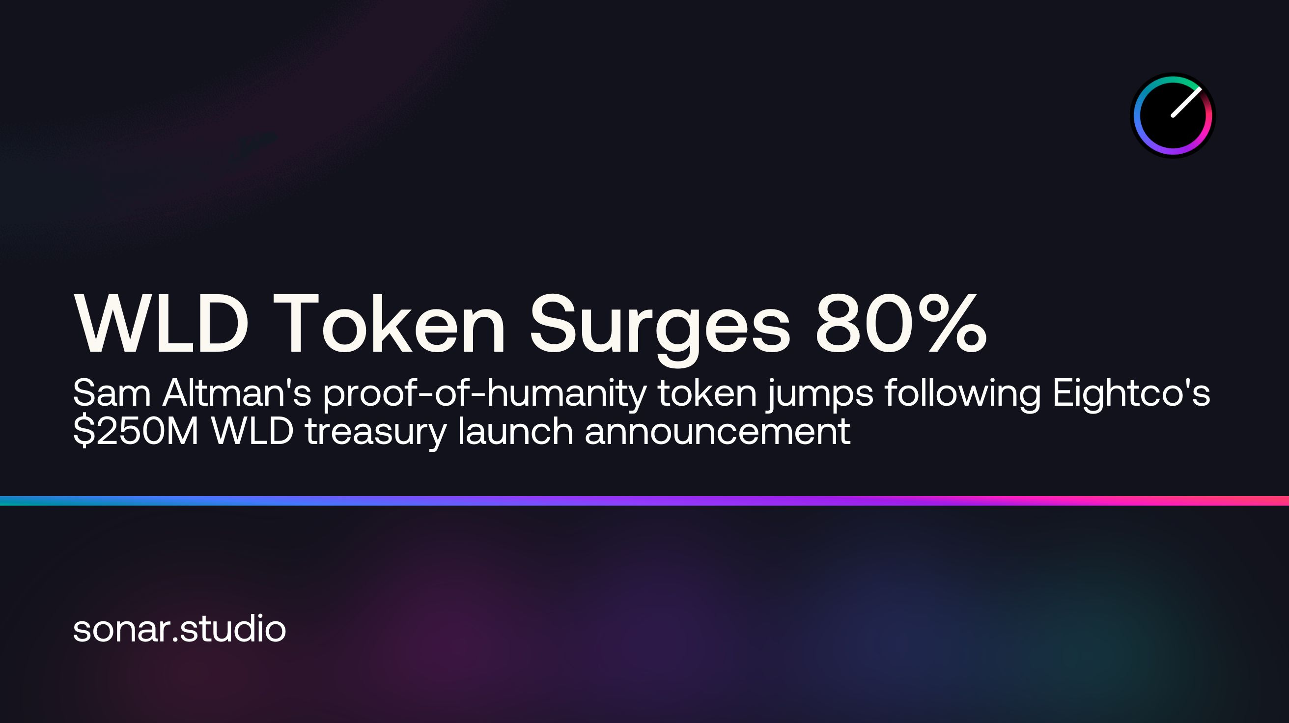 Sam Altman’s Worldcoin token (WLD) jumped close to 80% following a $270M injection from Eightco (soon rebranded “Orbs”).