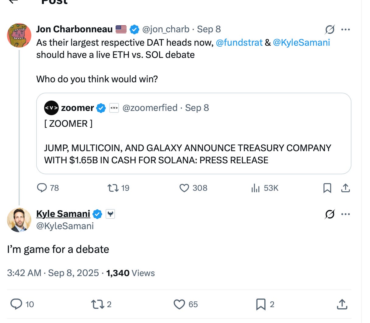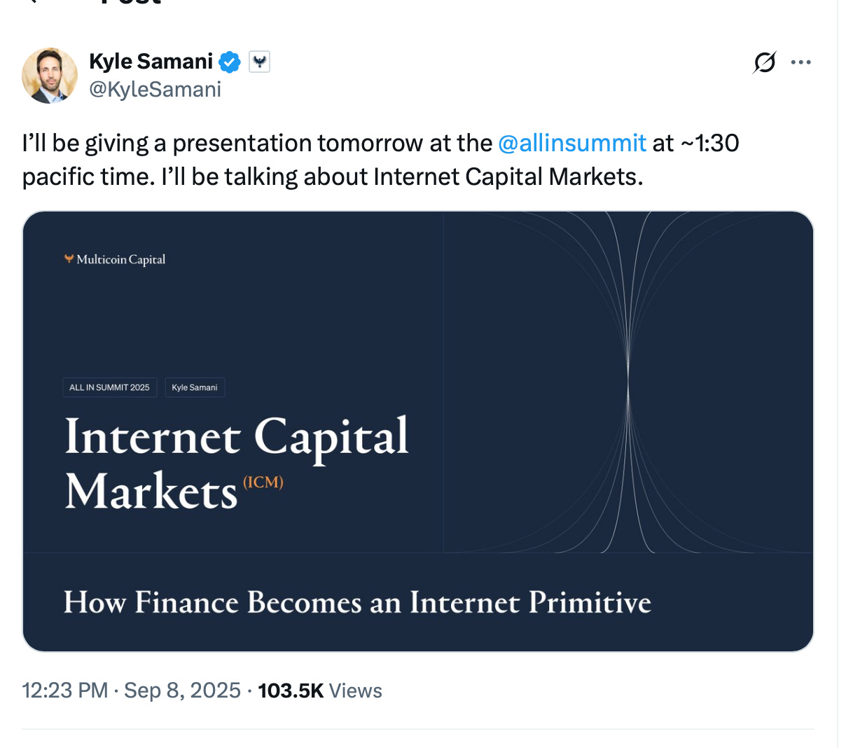 Chairing $1.65 B Solana Treasury Vehicle—Kyle Samani, co-founder and managing partner at Multicoin Capital, will become Chairman of Forward Industries' board—a publicly listed company that raised $1.65 billion via a PIPE to deploy as a Solana-focused digital asset treasury, backed by Galaxy Digital, Jump Crypto, and Multicoin itself.