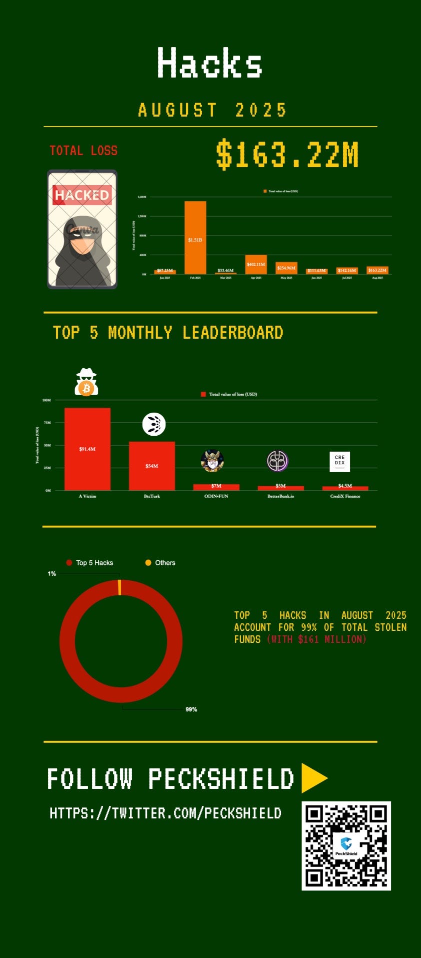 August saw a surge in blockchain exploits, with losses exceeding $163 million, making it one of the worst months for crypto security breaches on record.